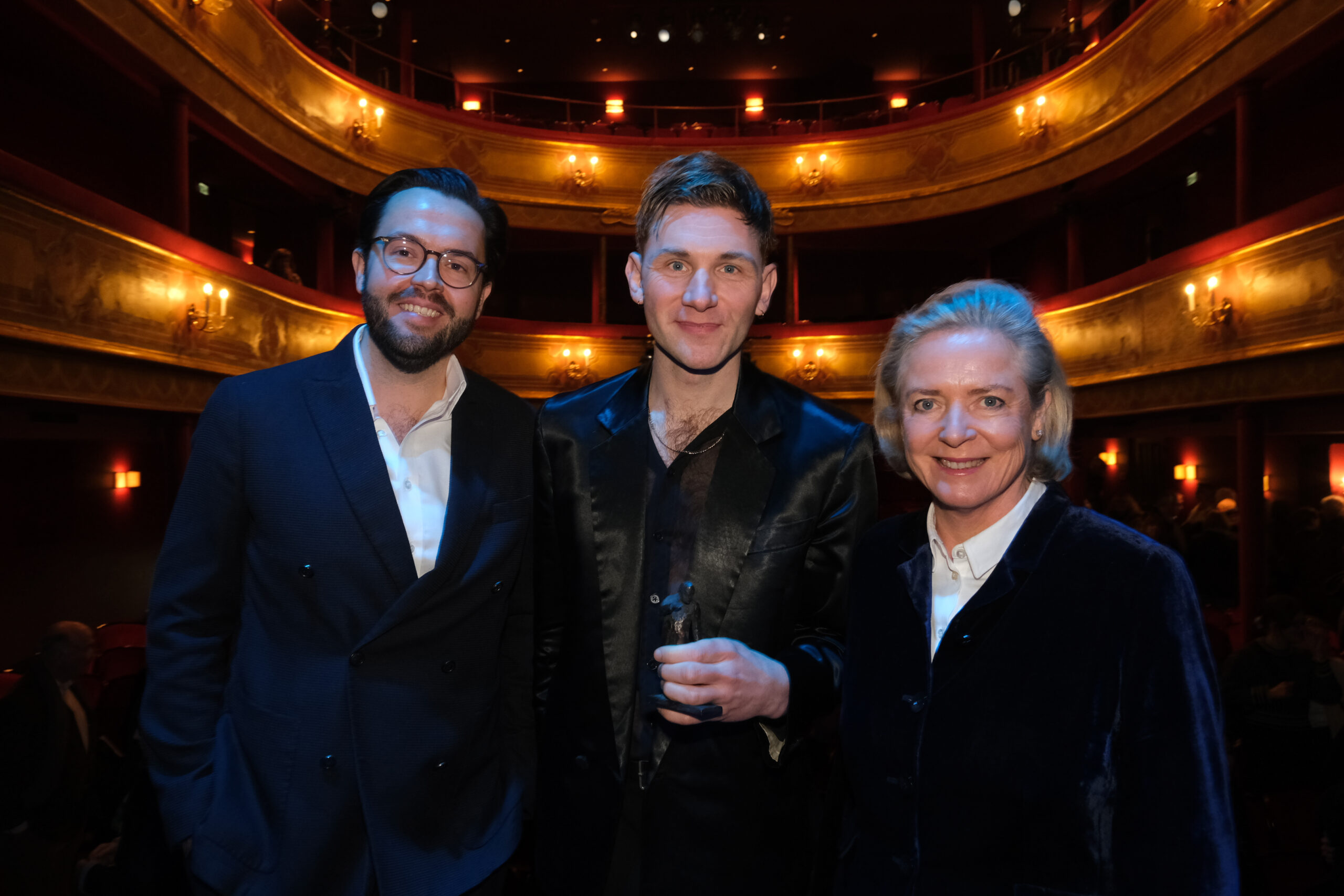 Honorarfrei Neujahrsempfang des Förderkreises des St. Pauli Theaters e.V. mit der Verleihung des Ulrich-Wildgruber Preises 2026 an Paul Behren Konstantin Behrendt und Cornelia Behrendt und Ulrich-Wildgruber-Preisträger 2026 Paul Behren in der Mitte