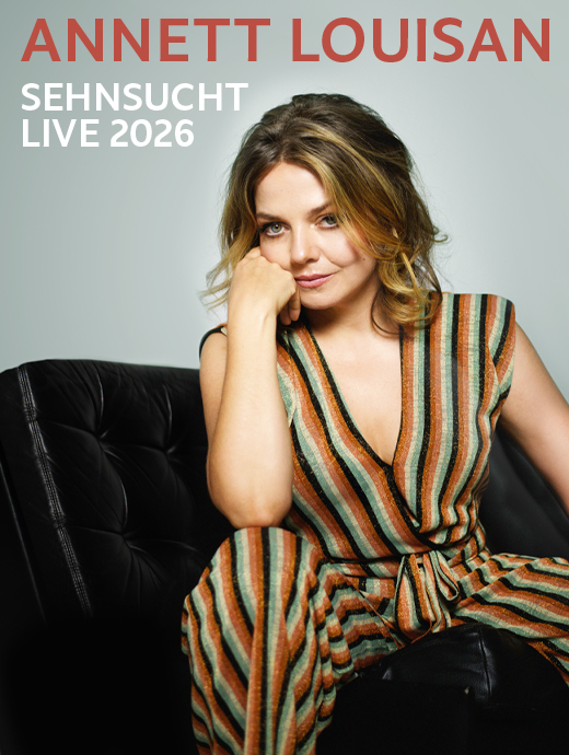 Annett Louisan ist die Stimme des deutschsprachigen Chansons – sie hat dieses Genre maßgeblich geprägt und ihm eine ganz eigene unverwechselbare Note gegeben. Seit ihrem Debüt im Jahr 2004 hat die Ausnahmekünstlerin sich als eine der einflussreichsten und erfolgreichsten Größen in der deutschen Musikszene etabliert. Bis heute hat sie weit mehr als 1,5 Millionen Tonträger verkauft, zahlreiche Musikpreise gewonnen und unzählige Menschen mit ihren Auftritten verzaubert. Die Tournee, mit der sie ab Herbst 2026 durch Deutschland, Österreich und die Schweiz reisen wird, heißt „Sehnsucht“.